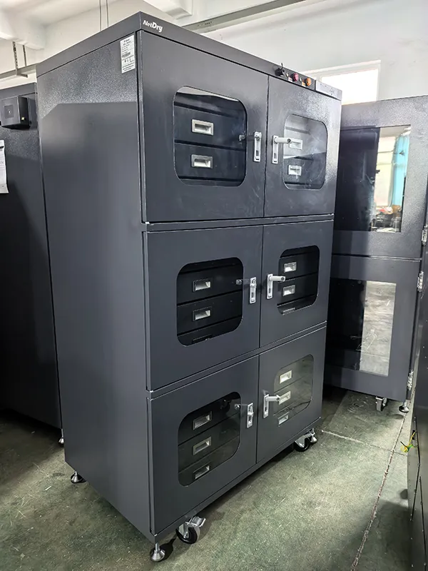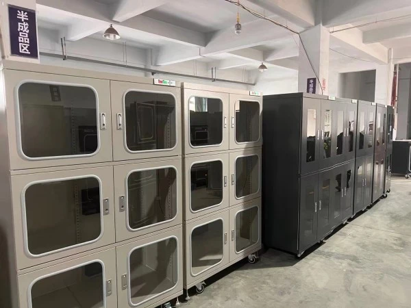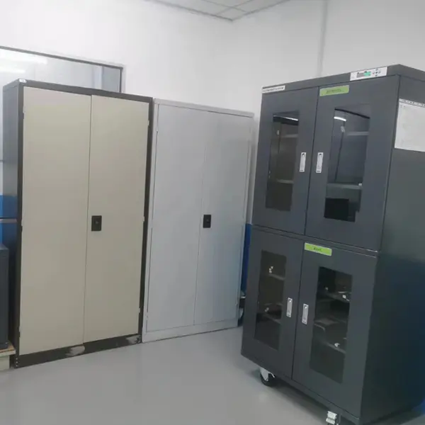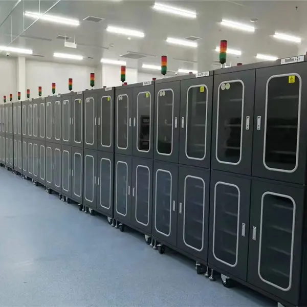 NetDry 防湿キャビネットは、PCB、PCBA、PCB マガジン、コンデンサ、抵抗器などの電子部品を保管するように設計されています。特に、開封されたものの SMT 生産ラインで十分に活用されていない PCB パッケージは、完全性を維持し、保存寿命を延ばすために直ちに防湿キャビネットに入れる必要があります。NetDry 電子ドライ キャビネットは J-STD-033D 規格に準拠しており、貴重な製品を保護するための低湿度環境を提供します。