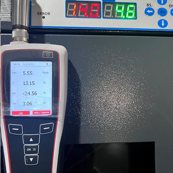 表示が不正確な除湿キャビネットは役に立ちません。当社の約束: 表示される測定値は、±3%RH および ±2.5%RH 以内に制御された誤差マージンを持つ真の測定値です。